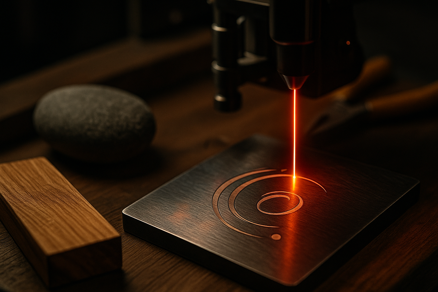 Grâce à la technologie fibre MOPA, nous gravons des couleurs directement sur l’inox et le titane, sans encre ni peinture.