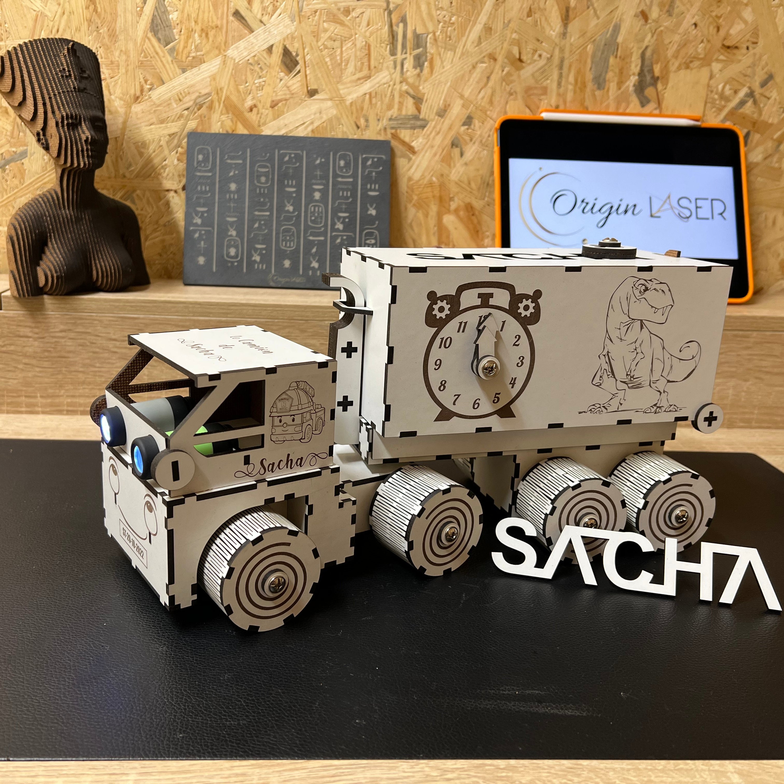Fabrication d’un camion en panneau de bois certifié FSC®, conçu à partir de plans réalisés en interne.