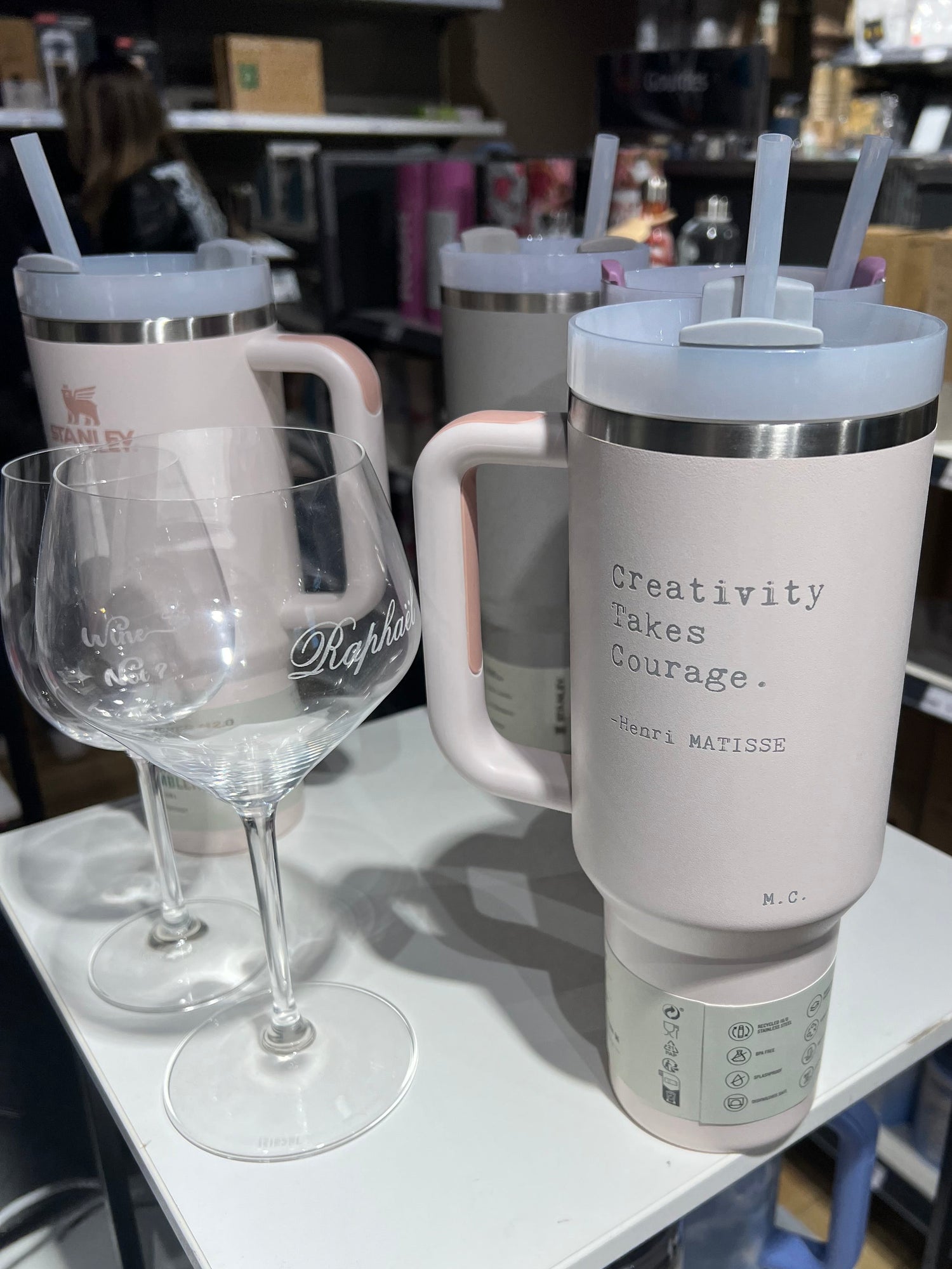 Nous personnalisons également vos objets personnels : gourdes, couteaux, accessoires ou pièces métalliques.