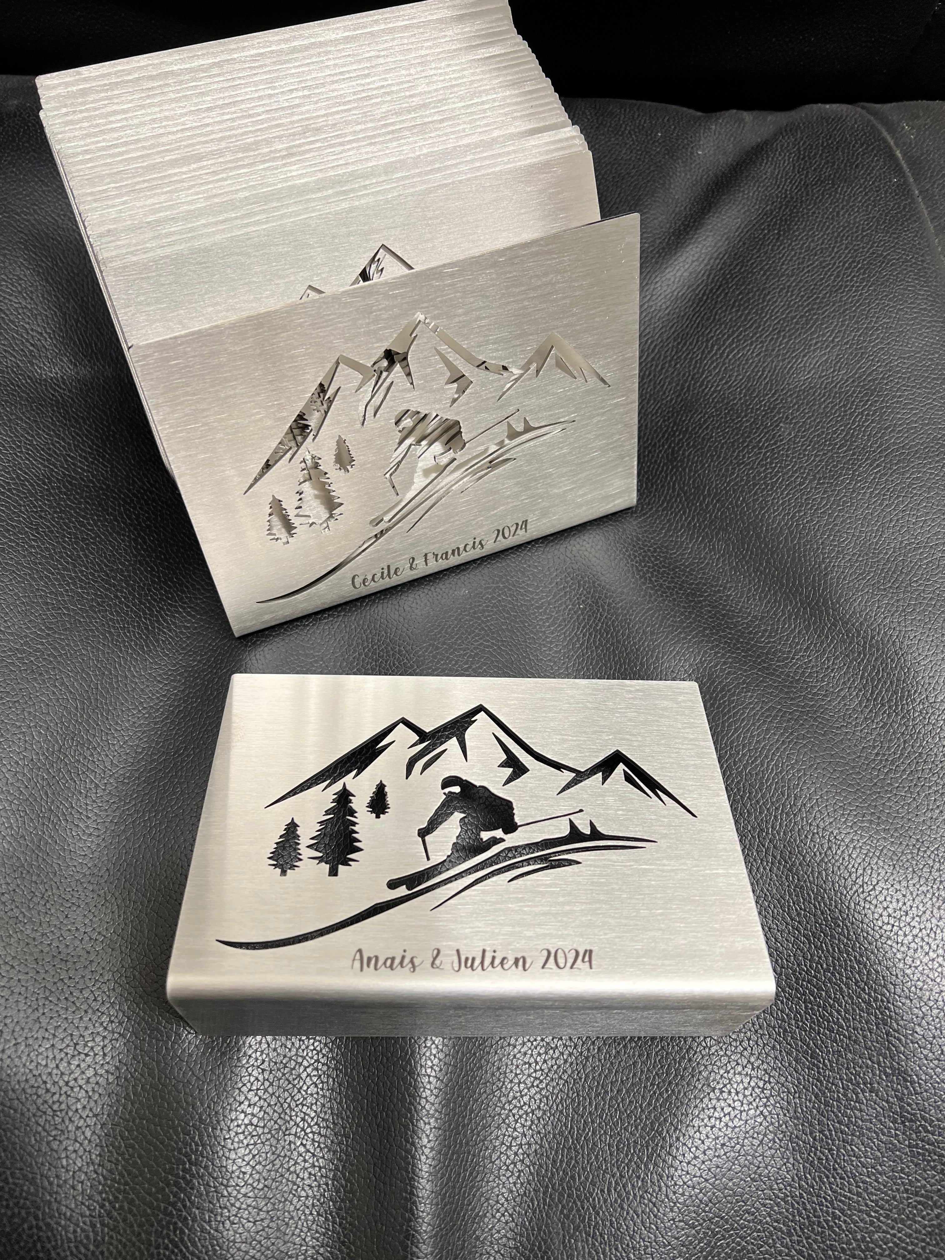 Chaque pièce illustre notre savoir‑faire en gravure laser, notre précision et notre approche sur‑mesure.