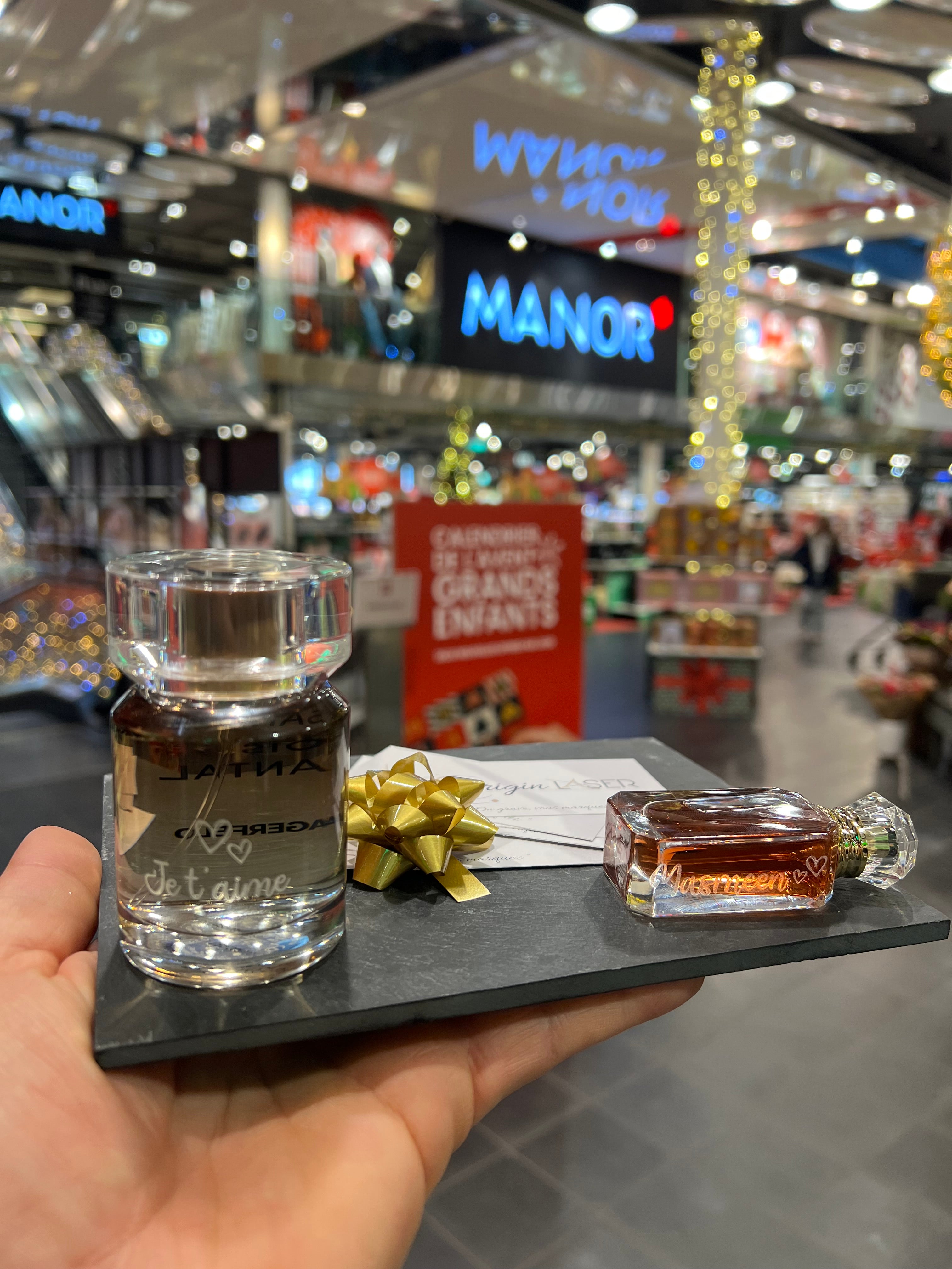 Gravure laser sur parfum ou coffret pour une personnalisation simple et durable.